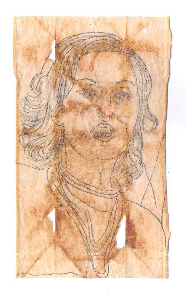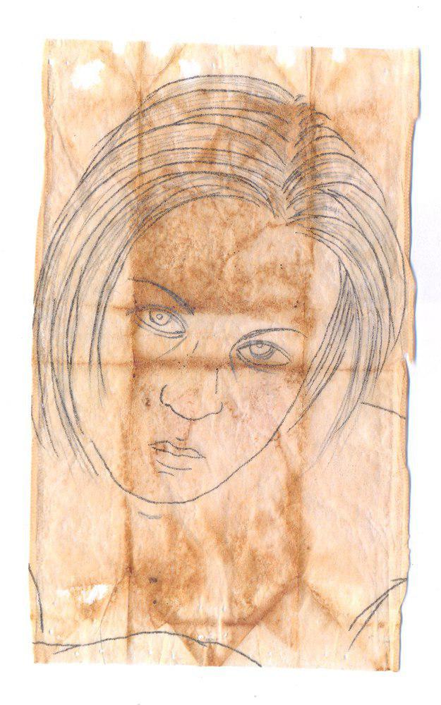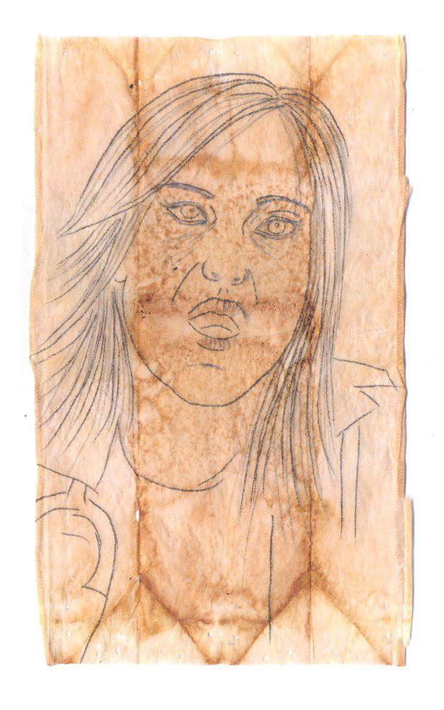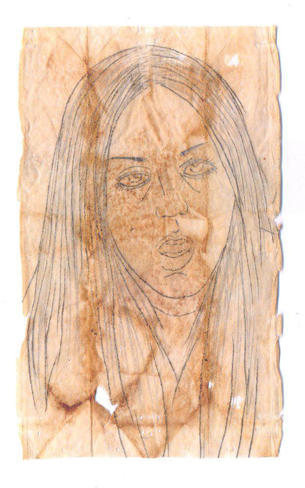 pencil on tea beg paper, 15.5cm, 2011